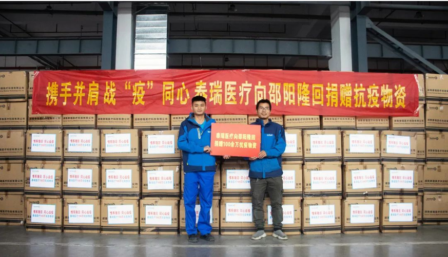 由于當(dāng)?shù)匾咔樾蝿輫?yán)峻,道路封鎖、物流車輛短缺導(dǎo)致捐贈物資難以進入,泰瑞突破重重關(guān)卡,經(jīng)過多方溝通與協(xié)調(diào)、調(diào)配,日前,泰瑞捐贈防疫物資已送達(dá)邵陽隆回等地,為當(dāng)?shù)鼐用?、一線抗疫人員等提供安全防疫保障,極大的緩解了當(dāng)?shù)胤雷o物資緊缺壓力。